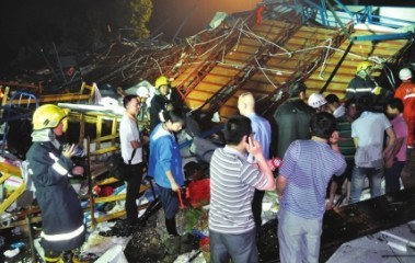 昨日凌晨1点过,眉山市消防支队接到报警:省道106线上,眉山岷江二桥往仁寿方向两公里路边,一栋两层板房发生垮塌。板房内住着100多名工人,仅十几人跑出,情况万分危急。