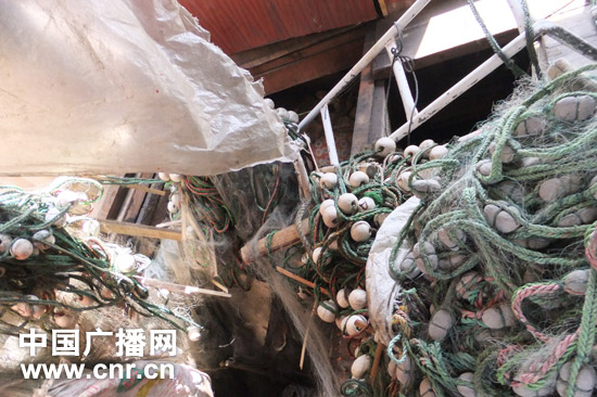 渔船冀昌渔5056号甲板凌乱不堪(中国之声记者陈俊杰/摄)