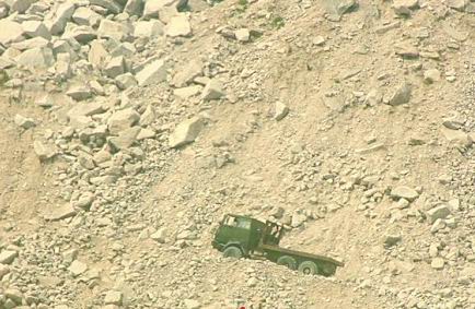 青岛大泽山,碎石块中货车艰难前行