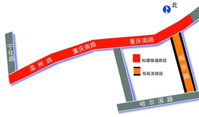 备受关注的温州路地道设计采用浅埋隧道方案,工程西起宁化路路口以东约120米,东至山东路,全长约1650米,其中闭口段约1150米。南京路拓宽范围自哈尔滨路至重庆南路,全长约900米。(记者 徐美中)