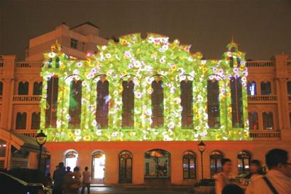 据市北区相关负责人介绍,大型户外3D立体电影《梦幻D景》,以米亚罗大酒店凹凸有致的外墙立面为演示屏幕,通过大型投影仪远距离、宽视角投射,并配合声光电技术,营造出具有强烈视觉冲击力的3D艺术效果。而整个演示过程,观众们可以不用佩戴专用眼镜,裸眼直接观看立体电影。记者在现场看到,《梦幻D景》的演示分为地景动漫、地景超人、海底世界、嘉年华等四个章节,总片长11分钟。在音乐和音效的配合下,墙面上陆续呈现出楼体变形,玻璃破碎以及飞流瀑布、淅沥雨滴、缤纷花朵等特效。整个影片的点睛之笔是活灵活现地再现了轻盈活泼的小超人、快乐游弋的大金龟和破墙而出的大鲨鱼,画面设计逼真生动,给人以神奇的视觉、声觉、感觉体验。而更令人称奇的是,在片子最后,伴随着礼花焰火画面的出现,米亚罗酒店上空放出了绚丽的冷焰火,营造出4D效果,将影片推向高潮。