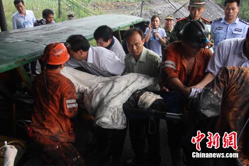 上午8时40分,载着生还矿工的运载车终于从矿井口缓缓升上来,等候在井口的人们立即围了上去。被救上来的矿工身上盖着棉被,眼睛上戴着眼罩,整个脸上都是一层黑色的煤灰,微微张开的嘴里露出的牙齿显得更加洁白。救援人员轻轻地从运载车上将生还矿工抬放到担架上。在武警官兵的护卫下,救援人员将生还矿工从矿井口抬上了早已等候在现场的救护车。医护人员立即对矿工进行了简单的检查治疗后,救护车载着生还矿工向合山市人民医院驶去。据了解,合山市人民医院已经做好了接诊施救准备,获救矿工一到达医院后就可以马上开始抢救。
