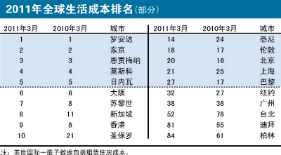 这一调查来自人力资源咨询、外包和投资服务提供商美世,其调查的目的是帮助跨国公司拟定外派员工的薪水和津贴。调查共涉及全球214个城市,衡量项目包括住房、交通、食品、服装、家居以及娱乐等。