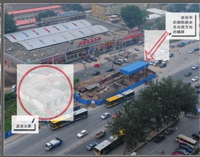 据了解,2005年3月初,北京市委、市政府启动朝阳路改扩建工程。2007年,二期工程再度启动。但截至今年,被市民称为“肠梗阻”的朝阳路依然没能完成扩建,而孟老太的房子就伫立在道路规划范围内。因拆迁补偿金额未能达成一致,孟老太拒绝搬家。