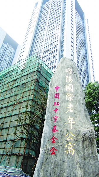 江苏明城房产开发有限公司曹副总经理称,他们在成立江苏曜阳老龄产业发展公司,准备经营曜阳国际老年公寓时,确实与中国红十字基金会联系过,目的是准备挂靠,但是双方至今没谈拢。“现在红会是非不断,本来准备将门前石头罩住的,但是还没有来得及呢!”面对大厦前巨石上刻有的中国红十字基金会等字样,曹总解释说。