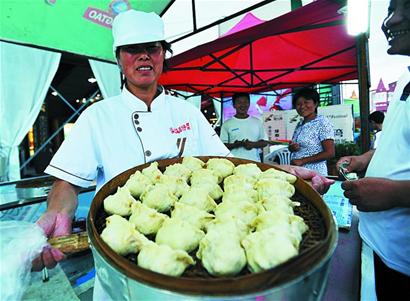 “啤酒城的人气确实不错,我们在这里一个摊位每天销量顶上了胶州两个店面。”刘玉秀美滋滋地说,因为他们的包子使用了胶州大白菜和里岔黑猪肉,因为口感不错,很多外地游客点名来买姜记包子。昨天,刘玉秀现场搞了一个特价,10元钱卖5个包子,结果一刻钟两笼包子全都销售一空,其中来自胶州的市民曾先生一下子买了30元钱的包子。“我们已经决定了,明年的啤酒节我们还要来参节,让我们姜记大包的名气再大一些。”刘玉秀说。