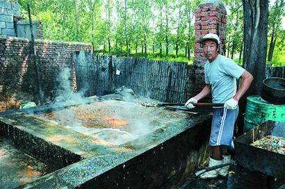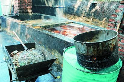 “真是太惊人了!”昨天上午11时许,正当执法人员进入窝点检查时,两名送鸡肛下脚料和泔水原料的工人开着运输车正要离开,被民警拦住带回了炼油点。记者在炼油点看到,一个约有上千平方米的院子紧挨着一条小河,在院子里堆满了大油桶,里面已经装满了提炼后的“成品油”。在院子另一侧,几名工人正在两口大锅旁炼油。记者和执法人员还没等靠近,就被一股说香不香,说臭不臭的刺鼻怪味熏的差点呕吐。