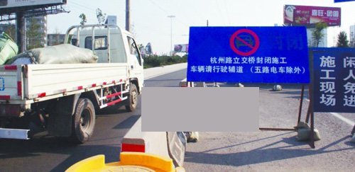 目前,青岛杭州路立交桥桥面施工已经进行了近十天,记者10月16日对施工现场探访发现,整个杭州路立交桥交通拥堵状况不容乐观,一辆旅游大巴撞碎了一辆私家车的车前镜,整个立交桥半幅交通接近瘫痪。施工方负责人介绍说,施工方昼夜施工,争取11月中旬到11月底之间恢复立交桥通行。