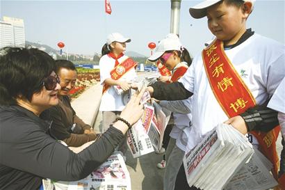 义工团的小朋友义卖早报
