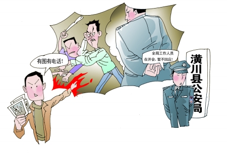 一个名为"网曝局长之子刺死人"的帖子,再次掀起了声讨无数。文中称,指使伤人的是河南潢川县公安局彭姓副局长儿子。相对于受害人的主动留电话报料,潢川县公安局的回答却有些暧昧闪避,"全局工作人员都在开会,暂不回应。漫画/王伟宾