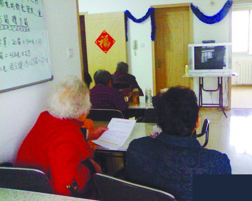 “大爷,我给你测测血压吧。”老人们都坐下后,女员工拿出了血压计开始给老人们测血压。“你最近有没有不舒服?”“没觉得,怎么了?”“你的血压还不错,不过心跳得没劲,没前几天跳得好。”