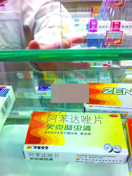 记者在南京路上问了国风药店,这里有蛔虫药但买的人不是很多。宁夏路上的一家药店内,有种蛔虫药叫肠虫清,摆在一个不太明显的角落里,工作人员说:“买的不多,现在蛔虫也比以前少多了。”而在徐州路上的百草厅药店内只有一种蛔虫药叫阿苯达唑,2.5元两片,工作人员说:“有来买的,这种药比之前的升级了,奶油的味道,孩子很喜欢吃。”