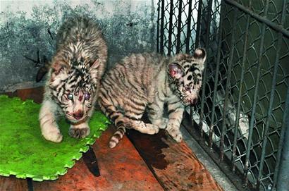 记者昨天从森林野生动物世界获悉,园区刚刚引进了两只孟加拉白虎,这是我市首次引进该虎种幼崽。