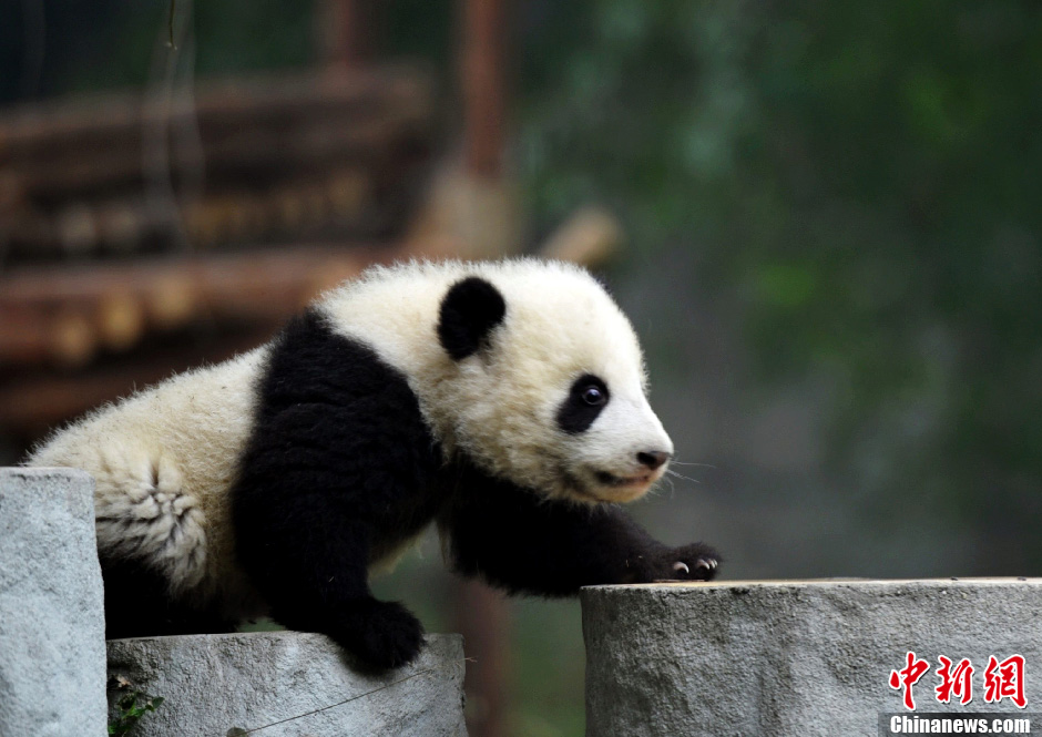 中国成都大熊猫繁育研究基地的12只大熊猫幼仔近日告别母亲开始群体生活。2011年,中国共成功繁育了21只大熊猫,圈养大熊猫数量达到328只,仅成都大熊猫繁育研究基地就有108只。图为正在玩耍的大熊猫幼仔。中新社发刘忠俊 摄