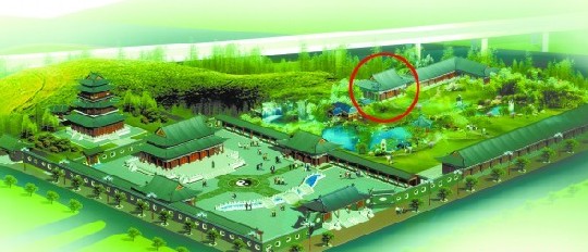 胡峄阳文化园效果图中的北斋庵(红圈处)。