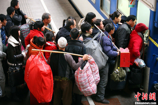 随着前期购票的旅客进入出行高峰阶段,加上腊月二十三“小年”到来,全国迎来春运第一个小高峰。图为1月15日,南京火车站迎来节前春运客流高峰。客流高峰主要以学生流、外来务工人员返乡流为主。中新社发钟山 摄