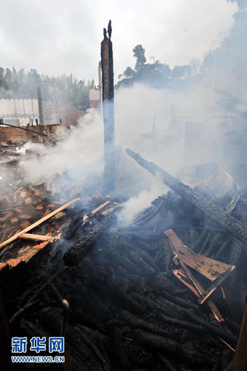 1月16日,福建省建瓯市迪口镇上店自然村被烧毁的民房冒着余烟。新华社记者 张国俊 摄