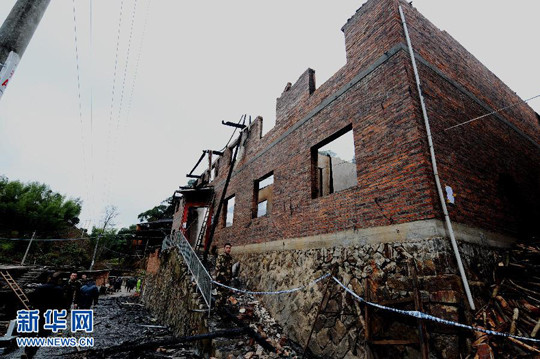 1月16日拍摄的福建省建瓯市迪口镇上店自然村被烧毁的民房。新华社记者 张国俊 摄
