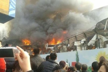 今天下午2时许,大连市48中学北侧大连地铁工棚大火。大火从靠近电车道的一端起火,火势迅速蔓延,火苗一度达到10多米高,浓烟四起。等119赶到现场,大火已经向东蔓延,烧过了三分之二面积的工棚,期间至少发生了一次爆炸(原因不明),碎片四处散落。