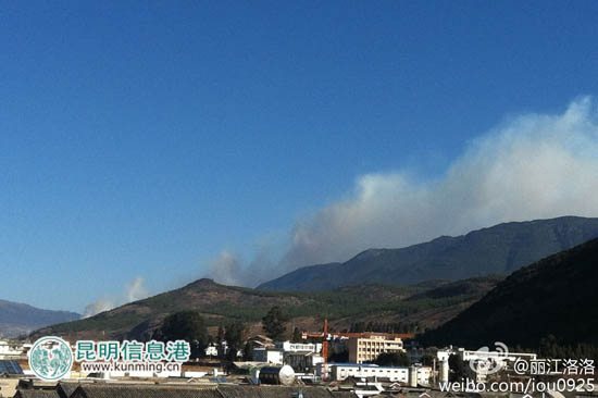 丽江玉龙雪山景区突发山火(网友@丽江洛洛 微博截图)