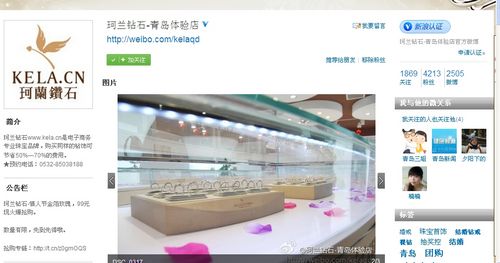 据调查了解,珂兰钻石青岛体验店官方微博的粉丝数量达到了4000余人,而珂兰钻石总部的官方微博粉丝数量高达27万人。这意味着珂兰公司发布的微博会在短时间内被大量的网友看到,微博内容如果不当将造成极大的社会影响。
