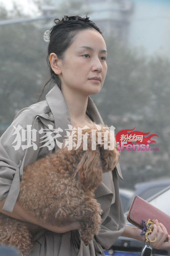 几分钟后一位花白头发的老大爷牵着一只漂亮的卷毛狗走到孙宁面前,老人接过行李车,小狗则对孙宁又舔又亲。孙宁一把抱起小狗,与那位老人亲热地说着话向机场车库走去,在电梯里孙宁蹲在地上,整理行李箱。