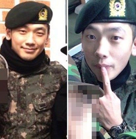 正在服兵役的韩星Rain早前通过了韩国国防宣传院的各项考试,成功转为了演艺士兵。日前有网友将Rain与到访友人的合照上传到了网上,引发热议。照片中,穿着军装的Rain一改以往酷男形象,居然瞪大双眼同时咬手指卖萌。看来,服兵役并反而令Rain找回了童趣。