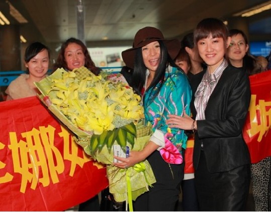 走出机场的娜姆尽管很疲惫,但看到迎面而来的百合花束,仍然让她笑得很灿烂