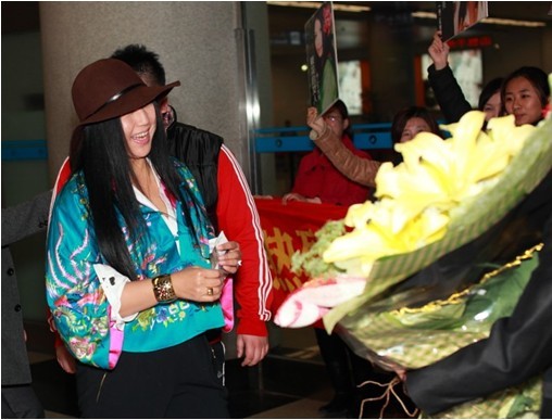 3月7日晚20:40,我国著名民族艺术家、风尚作家杨二车娜姆抵达青岛流亭机场,在候机厅等候多时的“红花教众”立刻陷入疯狂状态,尽管有机场保安维持现场秩序,但热情的粉丝仍然挤到杨二车娜姆跟前要求签名和合照。刚下飞机的娜姆尽管有些疲惫,但面对热情的粉丝,仍然与粉丝进行了亲密的互动和合影。