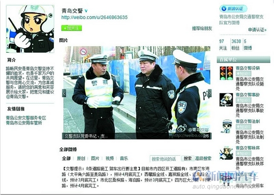 昨日上午,记者从市交警支队了解到,自即日起“青岛交警新浪官方微博矩阵”正式运行。整个微博由“青岛交警”官方微博、“青岛车管微博”、“青岛交警设施微博”及各高速公路大队和七区五市交警大队微博整合而成,矩阵内微博全部通过新浪网实名认证,形成以“青岛交警”官方微博为龙头,以车管、设施和各大队微博为主体,形成优势互补,为广大群众提供立体式交流平台。