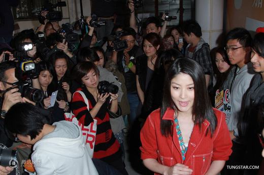 今天下午大概三时陈慧琳身碎花短裙现身,小龙包睡在一个有盖的婴儿篮里,由钟珍代为送上车,陈慧琳则留下接受传媒简单访问。