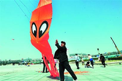 身长12米的大章鱼、会转眼珠的红金鱼、张着血盆大口的鲨鱼,还有八腿横行的威武螃蟹……昨天上午,数百名市民来到汇泉广场参与由青岛海底世界举办的 “鲨鱼飞上天”风筝比赛,上百只“海洋生物”风筝翱翔天空,一时间,广场上空仿佛成了鱼虾蟹们的“海底世界”。 在所有“上天”的海洋生物中,一个超大的白色大章鱼最为“拉风”,它随风舞动着修长的身体,显得格外淡定飘逸,它的主人相锡杰告诉记者,这个大章鱼身长12米,全身没有任何骨架支撑,是地地道道的软体动物,在它的头部和身上布满了风道,因此能够飘逸“飞天”。 大多数人都是带着一个风筝来放,59岁的风筝爱好者姜建国却一气儿带来了5个,而且都是他亲手制作的——身长10米的红章鱼、八腿的螃蟹,还有鲤鱼、金龙鱼、大鲸鱼。在姜建国娴熟的操纵下,5条大鱼轮番上天,个个抢眼。(记者 于小阳 摄影报道) |