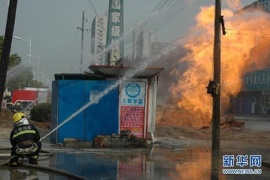 马鞍山天然气管道泄漏引发大火 火焰直喷10米