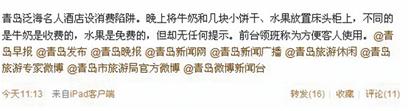 ![]() 住宿费较高的星级酒店除了硬件设施物有所值外,很多酒店还通过提供果盘、小点心等免费食品招徕顾客,市民邱先生在入住泛海名人酒店的时候像往常一样享用了酒店提供的“免费”食品,结果不想酒店在免费食品中埋了一颗“牛奶地雷”。“对方将一盒牛奶和免费的水果小点心放在在一起,而且没有标注,到了结账的时候才说这牛奶是收费的。能住得起酒店咱也不差这点钱,但这事让人气愤!”邱先生通过微博向记者投诉说。 消费者投诉: “免费”奶进账单 邱先生告诉记者,他一共在“泛海名人”入住了两晚,晚上回到酒店的时候,都会在桌旁的床头柜上发现一盒牛奶、一碟水果和几块饼干。按照邱先生入住酒店的经验,这些没有明确标注价格的食品都应该是酒店免费赠送的,所以他在休息的时候就享用了这些赠品。但是在昨天早上结账的时候,前台收银员突然问他是否喝了牛奶,邱先生反问牛奶不是免费的吗,结果对方表示牛奶要收费。 “好像一共30多元,因为我手头只有总的发票没有明细,所以具体多少钱没法确定。但这不是钱的事,床头柜上的水明码标价,同样要收费的牛奶却不标注,这不是消费陷阱吗?”邱先生提出了质疑。在邱先生提出质疑以后,前台工作人员找来了领班,领班表示在房间内有提示单,但是这个提示单却并不是放在床头柜的牛奶旁,而是与同样需要付费的茶叶放在一起。邱先生认为这有误导消费的嫌疑,而且他对于领班理直气壮的态度也很不满意。 酒店答复: 怎么放摆好后才能看 对于邱先生的投诉,记者先联系到了“泛海名人”前台工作人员,前台工作人员表示在房间内牛奶售价为9元,而记者在超市内探访发现,同款牛奶在超市的售价不到5.5元。记者向酒店工作人员提出了到房间内查看价目表和食品摆放位置的采访要求,该酒店一名姓顾的女士表示要请示领导。 下午4时左右,顾女士答复记者酒店目前客房入住率较高,而且夜餐还没有摆放,所以不便于让记者到房间内查看价目表和食品摆放的位置,需要今天该酒店领导统一安排后,才能让记者进房间。在表示牛奶有价格提示的同时,顾女士也表示这牛奶在酒店内的售价“有点贵”。你在入住酒店的时候有没有遇到类似的消费纠纷?可以拨打早报热线82888000告诉我们。(记者 王寿林) |