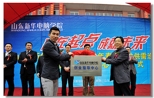 4月12日上午10点,“山东新华电脑学院2012年春季毕业生供需洽谈会”在学院西校区隆重举行。天空虽飘着蒙蒙细雨,但却阻挡不住新华学子参加招聘会的热情。 据悉,山东新华电脑学院近千名毕业生参加了本次招聘会。招聘会上人头攒动、热闹非凡,山东九创装饰有限公司、上海网宿科技有限公司等众多知名长期合作用人单位闻讯纷纷前来招募英才,提供了平面设计、网站后台管理、图像处理、网页设计师、网络技术员、软件设计开发人员、建筑效果图设计等岗位。本次招聘会的一大亮点是:山东新华电脑学院为了帮助毕业生迈好就业和创业的第一步,在集团领导和社会各界创业伙伴的关心和帮助下于今天正式成立山东新华电脑学院创业指导中心。新华教育集团就业部廖部长与企业代表上海网宿科技有限公司市场总监徐佳共同为创业指导中心揭牌。
