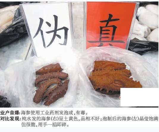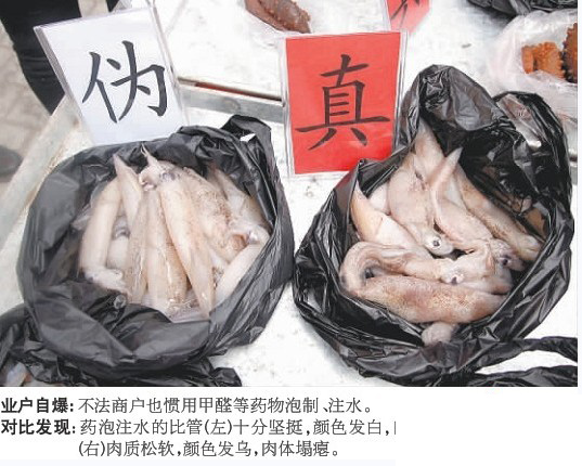 ![]() 硫磺熏的莲子、福尔马林液泡的虾仁、甲醛泡的墨鱼、药水浸的蹄筋……15日,南山市场30多家业户在南山商会的组织下走上街头,自发爆出了干海货、水产品等多个行业里的黑幕。经过现场对比,市民唏嘘不已,原来平日里首选的“鲜亮”海鲜,竟然多是用化学药品泡制出来的“毒物”。 15日上午9时许,南山市场外搭起了展台,市场上30多家业户用塑料袋带着虾仁、墨鱼、比管、海米、海参、莲子、茴香等30多种商品陆续聚集到展台前,引来大批市民围观。“这虾仁这么难看啊?这一份好,饱满,色泽也好。”两包虾仁刚刚摆上展台,市民一边对比一边七嘴八舌地议论着。 “这份虾仁看上去很鲜亮,很饱满,但却是用化学药品泡出来的,吃了对人体损害很大,这一包卖相不怎么好,看上去还以为是卖剩下的,其实是刚剥出来的,未经任何手段加工过。”这话从一位海货业主的嘴里一出,在场的市民立刻一愣。“平常到市场上买虾仁,都是挑这种又大又好看的买,多新鲜啊,竟然是用药泡的。”市民秦女士惊呼。 随着展台上的真假海货越来越多,围观的市民也里三层外三层。每一种商品有两份,一份是真品,无任何添加加工,一份则是由行内惯用手段进行了“化妆”。经过现场的真伪对比,红色素染色的海米、甲醛泡发的墨鱼、药水发的海参、硫磺熏蒸过的莲子等全部集中曝光。 揭开“毒物”的真面目,市民着实吓了一跳,“完全颠覆了平时上市场买菜时的判断方法,看来‘海鲜不怕丑’,不能光图新鲜好看啊。”市民单先生把所有的真假对比研究了一遍,唏嘘不已。 “实话说,这些造假手段在各个行业内都很清楚,作为商户,我们愿意站出来自爆,就敢保证自己卖的东西绝对不掺‘毒’不使假。”南山商会成员、水产品业户刘老板说。 南山商会会长王进介绍 ,让业户站出来自爆行内“毒物”,这也是第一次,之前做了大量的动员工作。“一开始担心大家不愿配合,不敢说话,今天一上街头看得出,业户都非常希望市民能了解真相,在购买中能有准确的真伪判断。”王进称,南山市场集中了海鲜、干海货、茶叶等行市,今后每个月都将“自爆”其中几个行市的真假商品,揭露食品安全背后的“黑幕”,以震慑造假业户,肃清市场。 ■花絮 快看看,我买的是不是甲醛比管? 15日,展示台前,市民宋女士急火火地拎着一个塑料袋挤进人群,朝着南山商会的工作人员求助,“我刚买了一些比管,你们快帮我看看,这是不是用甲醛泡过的?” 工作人员拿出比管仔细捏捏、看看,并于甲醛泡制、注水的笔管进行了对比,告知“这些比管没动过手脚,是天然的”,宋女士这才安心。 ■链接 若有业户违规,移交工商部门 南山市场处在人气最旺的台东商圈,也是目前市内行市最丰富的市场,市内最大的水产批发市场也在南山。“可以说,南山市场的食品商品质量安全,牵涉到市区大部分消费者和市民。”南山商会会长王进表示,这次业户的真伪辨别和行内黑幕自爆是个开端 ,“今后每个月,每一天我们都接受市民的维权举报 。每个月都要拉出几大民生行市的业主来,主动给市民说法。” 王进还向记者透露,“自爆”之后,一旦发现有南山市场业户违规,第一次进行劝阻,第二次予以教育,第三次将直接移交工商部门处置。(记者 王媛) |
