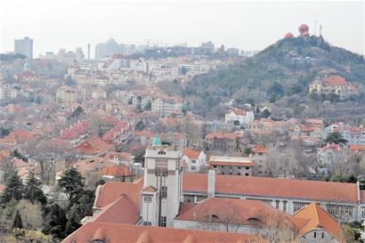 “右上部分的山就是信号山,当时顶部已有建筑物。”于立华说,他指着信号山山脚处的多栋平房及二层小楼说,经过考证这是原青医附院旧址,当时叫野战医院。而照片左下角有栋圆形的3栋小楼矗立在四合院中,他推测这个地方为如今欧人监狱景区。“照片左上部分,在当时信号山西部的一大片居民楼应该是如今的肥城路片区。”