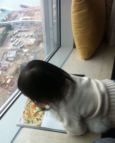 赵薇爱女海景房新照 扎羊角辫玩游戏显乖巧(图)