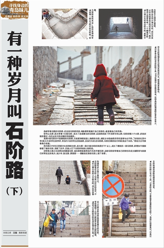 还有那大港火车站附近的隧道石阶、鱼台路那条能推自行车的平缓石阶,这些石阶因有着自己的特色而成为摄影师与画家们时常驻足的地方,张少华、陈宝国、蒋雯丽……都曾经在那些石阶上留下身影。(记者 王猛 摄影报道)