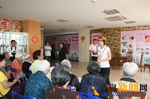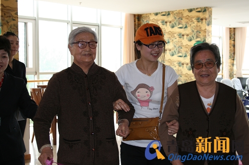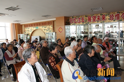 老人们和网友欢聚一堂 还有的网友带着自己的孩子来看老人们,小朋友还为老人唱起了歌,《大海啊,故乡》、《春天在哪里》……稚嫩的声音让大厅里充满了欢声笑语。公寓的老人们更是自告奋勇,两位老人分别为大家演唱了《北国之春》和《爱的奉献》,两位老人嘹亮的歌声赢得了满堂喝彩。网友“由由爱爱”还为大家演唱了《军港之夜》,老人和网友们不约而同的也跟着“由由爱爱”唱了起来,“海风你轻轻的吹,海浪你轻轻的摇,年轻的水兵多么辛劳”……