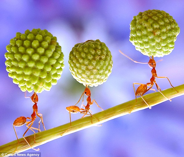 日前,印度尼西亚摄影师Eko Adiyanto利用一套特制的微距摄影装置,拍摄到蚂蚁在合欢树上搬运荚果种子的场景。这些种子比蚂蚁的体型要大上很多,但后者在搬运过程中,却展现出了惊人的力量和良好的平衡性。