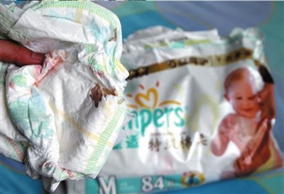 宝宝的纸尿裤出现暗红色污迹,而一袋84片帮宝适牌特级棉柔纸尿裤,消费者崔女士发现其中4片有污迹。昨日(10日),崔女士联系厂家一周后,还未得到彻底解决。