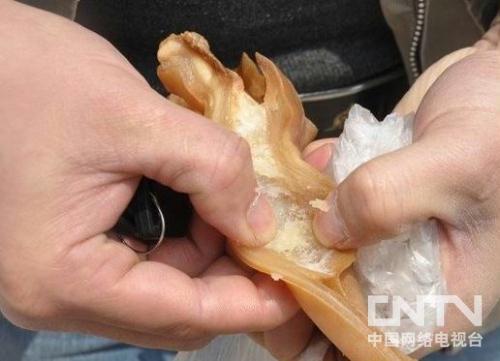 明胶猪耳朵 近日,江西赣州市民买到了人造猪耳朵,并网上发帖怀疑是明胶和塑料所制。5月14日,网络新闻联播记者从江西省食品安全办公室了解到,经江西省相关权威检测机构检测和有关专家鉴定,由赣州市日前查获送检的非法加工卤猪耳朵为假猪耳朵,主要成分为明胶和油酸钠。公安机关已介入调查,对非法加工假猪耳朵的杨某采取了强制措施。 记者从江西省食品安全办公室了解到,为了科学慎重起见 据北京工商大学食品化学相关专家介绍,油酸钠属于一种阴离子表面活性剂,根据食品安全法规定,此项成分未出现在食品安全国家标准食品添加剂使用标准《GB2760-2011》中,也就是说,油酸钠是不能作为食品添加剂进行使用。不法分子添加油酸钠,为了让假猪耳朵从色味上更逼真(白色至略带黄色粉末或淡褐黄色粗粉末。油酸钠有特殊的味道和气味,貌似牛油),让市民在食用的过程中不容易分辨其假冒成分。但含有金属性的纯油酸钠具备精良的去污作用,作用到人体内对健康影响可想而知。 教授还说,加入油酸钠是为了让明胶在碱性的环境下有个更好的粘稠度,同时增加滑溜感。过多的钠被人体吸入,容易引起高血压,同时对心脏有影响。 据了解,之前贩售人造猪耳的杨某被取保候审,罚款5000元钱。而目前公安机关已介入调查,对非法加工假猪耳朵的杨某采取了强制措施。 3月30日上午,江西赣州市民刘先生的母亲在菜市场买了10元钱的猪耳朵。拿回家之后,刘先生发现,这次的猪耳朵和平时的不一样,不仅有股难闻的化学品味道,而且一撕就破。他联想到曾看过有关人造猪耳朵的报道,怀疑母亲这次买的就是用明胶和塑料制成的人造猪耳朵。 4月1日,赣县工商局梅林工商分局执法人员到光彩农贸市场巡查并查获了人造猪耳朵摊贩。并于5月初送检。 |