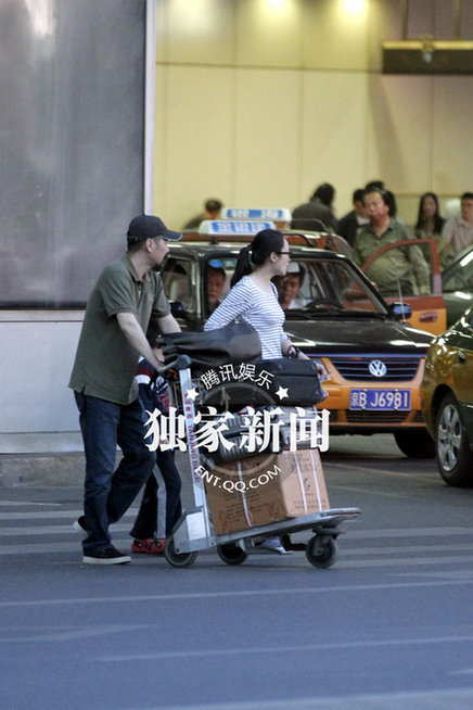 蒋勤勤素颜亮相成管家婆 陈建斌机场扮酷(组图)