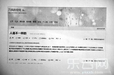 赵登用的QQ空间,有一篇名为“人是不一样的”的文章。本报记者 杨观摄