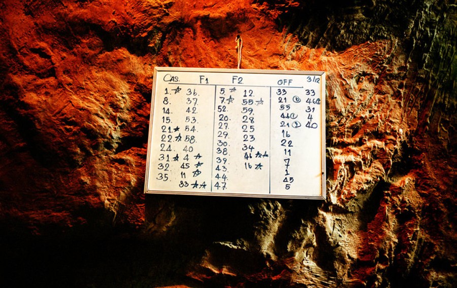 一家酒吧悬挂的白板上写着舞女们的接客情况。