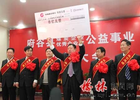 媒体曾将高乃则(中)和另一位榆林市府谷县企业家刘彪致富不忘奉献社会,积极投身于公益、慈善事业的现象称为“高刘现象”。资料图