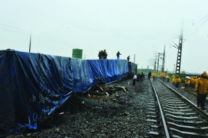 5月19日凌晨3点46分,宁波港务集团公司一列自备货运列车脱轨,造成车头及6节货车车厢倾斜、侧翻,但没有造成人员伤亡。