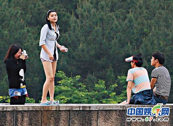 路过情侣要求和陈晓东合照,“咪神”很识相走开,激凸身材更加表露无遗。