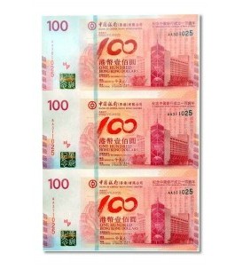 中国银行成立100周年纪念钞整版30连张(香港整版钞) ( )